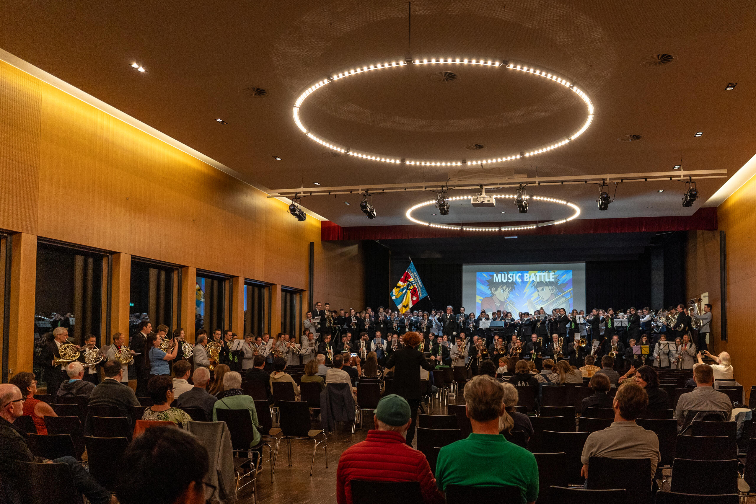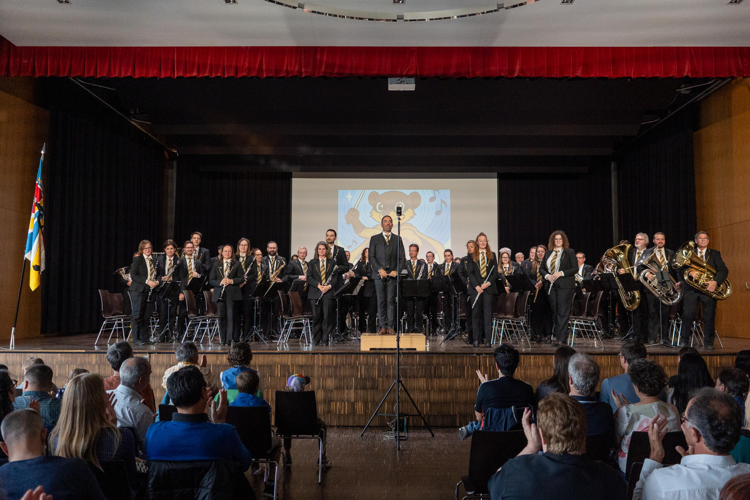 Unser Schlagregister wurde an diesem Konzert zu unserem Hauptakteur: Gemeinsam mit dem renommierten Perkussionisten Raphael Christen durften wir Stücke für Blasmusik und Perkussion vortragen.